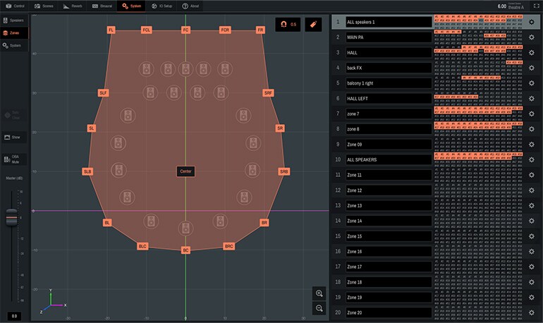 For object-based rendering, the user can convert the DAW or console panning/rendering area to any configuration from a basic cube to a 16-sided polygon within which objects can be positioned. Three layers are available with heights that can be individually defined by the user. Speaker zoning allows audio objects to be assigned to specific sets of speakers within the system.